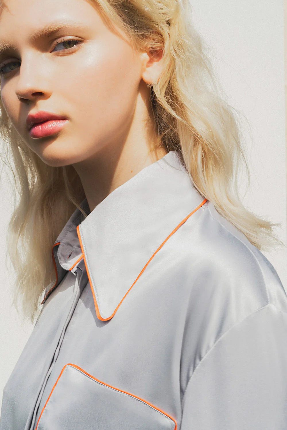 The Self-Renewal Set brings together Eglantina Zingg’s silver silk pajama set, crafted in 100% silk, with Snow Fox’s sheet mask discovery set — a selection of clean, clinically studied formulas designed to support the skin barrier.